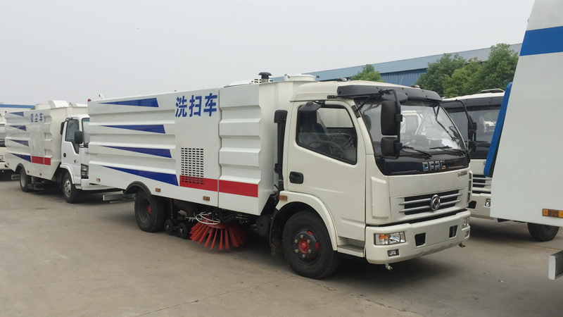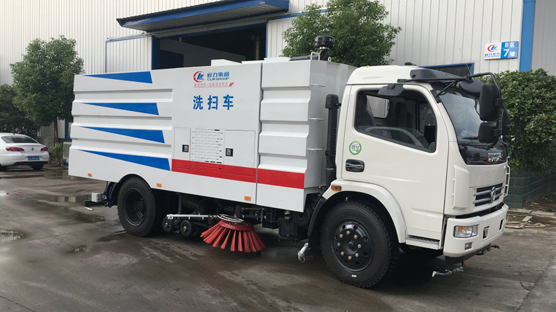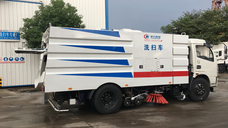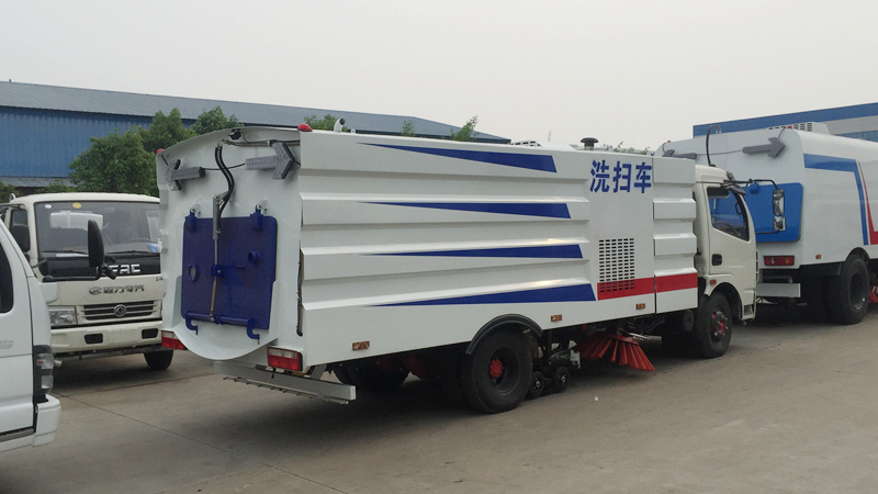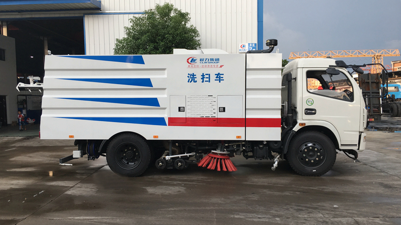- 底盤發(fā)動機驅動洗掃車向前行走,掃至吸嘴前方的垃圾不斷進入到吸嘴中,并源源不斷地被吸到垃圾箱中,實現路面清掃。