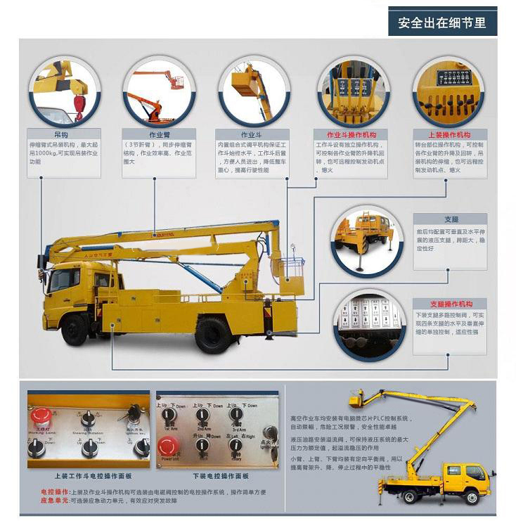 標(biāo)準(zhǔn): 高空作業(yè)車:產(chǎn)品結(jié)構(gòu)簡(jiǎn)單、堅(jiān)固耐用、操作方便可靠。獨(dú)特設(shè)計(jì)的全回轉(zhuǎn)三折臂液壓操控系統(tǒng)使工作人員在高空作業(yè)時(shí)操作更平穩(wěn),能安全有效的將工作人員送到8-24進(jìn)行高空作業(yè)或者進(jìn)行維修、安裝、清洗、攝影、造船、化工、電力、剪枝、更換路燈及其他工程搶修作業(yè)。該車電動(dòng)操作系統(tǒng)均采用防水開關(guān),避免了開關(guān)易進(jìn)水,銹蝕漏電的問(wèn)題,工作斗采用管狀工作斗,造型美觀,在工作斗和轉(zhuǎn)臺(tái)實(shí)行雙位置操作,使用方便,維修簡(jiǎn)便,安全可靠。